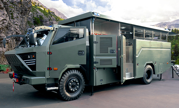 The Ganilla Field Kitchen Vehicle has the capability of loading aspects in the Hercules C130 H/HS aircraft cargo. Compact Design (Source of electricity, gas and kitchen integrated in one vehicle). Cooking capacity is large enough in one use. Materials in the kitchen cabin use food grade stainless steel.